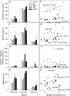 Näsholm T, Edfast A, Ericsson A, Norden L (1994) Accumulation of amino acids in some boreal forest plants in response to increased nitrogen availability. New Phytol 126:137–143