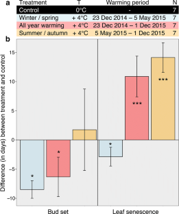 Strømme CB, Julkunen-Tiitto R, Krishna U, Lavola A, Olsen JE, Nybakken L (2015) UV-B and temperature enhancement affect spring and autumn phenology in Populus tremula. Plant, Cell Environ 38:867–877