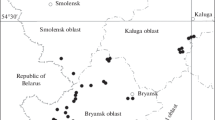 The study site is located in a boreal coniferous forest in northeast Finland, close to the Oulanka research station (66° 37.153′ N, 29° 31.535′ E, 166.5 m a.s.l., Suppl. Fig. S1a). Scots pine (Pinus sylvestris L., non-cultivated) is the canopy-forming tree species, which mostly survived from the most recent wildfire phase between 1912 and 1925 (Mickleburgh 2006) and thus forms a mixed-aged forest dominated by older trees. The forest field layer consists of two different habitat types that alternate at 2–5 m distances: (1) the drier, more “sunlit habitat”, dominated by reindeer lichens (Cladonia sp.) growing over feather mosses (Pleurozium schreberi (Willd. ex Brid.) Mitt.), and (2) the moister, more “shaded habitat”, dominated by feather moss and ericaceous dwarf shrubs (Suppl. Fig. S1b, for vegetation community differences among habitats, see Suppl. Tables S1 and S2). The soil moisture at 5 cm depth was on average 174.3 ± 18.7 mV in the sunlit and 206.7 ± 34.9 mV (mean ± SE) in the shaded habitats during July 2019 (Delta T SM150T). The amount of photosynthetically active radiation (PAR) was 424 ± 335 μmol photons m−2 s−1 in the sunlit and 341 ± 254 μmol photons m−2 s−1 (mean ± SE) in the shaded habitats during 22–31 Jul 2019. Soils are freely draining sandy tills and gravels classified as haplic podzol, and the organic horizon, comprising litter and humus, is 0.5–5 cm. The long-term mean annual temperature is − 0.2 °C, July being the warmest (15.0 °C) and January the coldest (− 14.6 °C) month, and the mean annual precipitation is 550.9 mm (1967–2018, Oulanka research station). The semi-domesticated reindeer (Rangifer tarandus L., wild caribou in North America) and elk (Alces alces L., moose in North America) are common local ungulates with reindeer population density being 1.3 individuals per km2 (https://paliskunnat.fi/py/paliskunnat/paliskuntien-tiedot/alakitka/) and elk population density 0.3 individuals per km2 (http://riistahavainnot.fi/hirvielaimet/hirvitiheys).