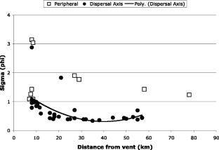 Pyle DM (1989) The thickness, volume and grainsize of tephra fall deposits. Bull Volcanol 51:1–15