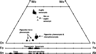 Andersen DH, Lindsley DH, Davidson PM (1993) QUILF: a PASCAL program to assess equilibria among Fe Mg Mn Ti oxides, pyrosenes, olivine and quartz. Comput Geosci 19:1333–1350