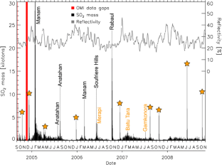 Yang K, Krotkov NA, Krueger AJ, Carn SA, Bhartia PK, Levelt PF (2007) Retrieval of large volcanic SO2 columns from the Aura Ozone Monitoring Instrument (OMI): comparison and limitations. J Geophys Res 112:D24S43. doi:10.1029/2007JD008825