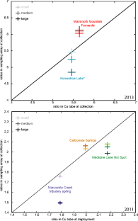 Helium (He) concentration and 3He/4He anomalies in soil gas and spring water are potentially powerful tools for investigating hydrothermal circulation associated with volcanism and could perhaps serve as part of a hazards warning system. However, in operational practice, He and other gases are often sampled only after volcanic unrest is detected by other means. A new passive diffusion sampler suite, intended to be collected after the onset of unrest, has been developed and tested as a relatively low-cost method of determining He-isotope composition pre- and post-unrest. The samplers, each with a distinct equilibration time, passively record He concentration and isotope ratio in springs and soil gas. Once collected and analyzed, the He concentrations in the samplers are used to deconvolve the time history of the He concentration and the 3He/4He ratio at the collection site. The current suite consisting of three samplers is sufficient to deconvolve both the magnitude and the timing of a step change in in situ concentration if the suite is collected within 100 h of the change. The effects of temperature and prolonged deployment on the suite’s capability of recording He anomalies have also been evaluated. The suite has captured a significant 3He/4He soil gas anomaly at Horseshoe Lake near Mammoth Lakes, California. The passive diffusion sampler suite appears to be an accurate and affordable alternative for determining He anomalies associated with volcanic unrest.