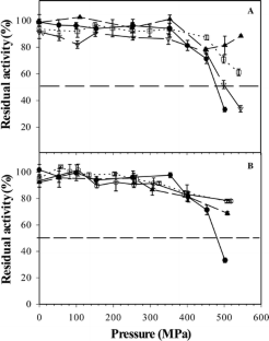Degraeve P, Rubens P, Lemay P, Heremans K (2002) In situ oservation of pressure-induced increased thermostability of two β-galactosidases with FT-IR spectroscopy in the diamond anvil cell. Enzyme Microbial Technol 31:673–684