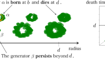 A persistence diagram is a countable multiset of points in \(\mathbb { R}^{2}\) along with the infinitely many copies of the diagonal \(\Delta =\{(x,y)\in \mathbb { R}^{2} \mid x=y\}\). We also require for the countably many points \(x_{j}\in \mathbb { R}^{2}\) not lying on the diagonal that \(\sum _{j} \Vert x_{j}-\Delta \Vert <\infty \).