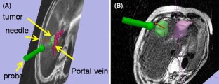 In all cases, percutaneous puncture into the tumors was successful, even in the case of tumor undetectable by US. Mean fiducial registration error was approximately 3 mm. MR images captured after the procedure clearly demonstrated the ablated area. No mortality or major complications occurred, except for mild hemorrhage, pyrexia, and ascites.