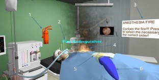 The Virtual Electrosurgical Skill Trainer is a tool for training surgeons the safe operation of electrosurgery tools in both open and minimally invasive surgery. This training includes a dedicated team-training module that focuses on operating room (OR) fire prevention and response. The module was developed to allow trainees, practicing surgeons, anesthesiologist, and nurses to interact with a virtual OR environment, which includes anesthesia apparatus, electrosurgical equipment, a virtual patient, and a fire extinguisher. Wearing a head-mounted display, participants must correctly identify the “fire triangle” elements and then successfully contain an OR fire. Within these virtual reality scenarios, trainees learn to react appropriately to the simulated emergency. A study targeted at establishing the face validity of the virtual OR fire simulator was undertaken at the 2015 Society of American Gastrointestinal and Endoscopic Surgeons conference.