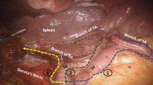 Huang CM, Chen QY, Lin JX, Zheng CH, Li P, Xie JW, Wang JB, Lu J (2014) Laparoscopic spleen-preserving splenic hilar lymphadenectomy performed by following the perigastric fascias and the intrafascial space for advanced upper-third gastric cancer. PLoS ONE 9(3):e90345
