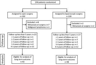Kitano S, Inomata M, Mizusawa J, Katayama H, Watanabe M, Yamamoto S, Ito M, Saito S, Fujii S, Konishi F, Saida Y, Hasegawa H, Akagi T, Sugihara K, Yamaguchi T, Masaki T, Fukunaga Y, Murata K, Okajima M, Moriya Y, Shimada Y (2017) Survival outcomes following laparoscopic versus open D3 dissection for stage II or III colon cancer (JCOG0404): a phase 3, randomised controlled trial. Lancet Gastroenterol Hepatol 2:261–268