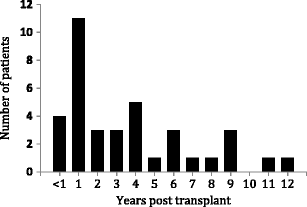 Thirty-seven patients (41% females, age 3–18 years) were included. Average intra-patient difference in trough tacrolimus concentration was 0.05μg/l (95% CI –0.37 to 0.47). Average intra-patient difference in eGFR was −1.20 ml/min/1.732 (95% CI –3.53 to 1.13). Three patients had acute rejection during 12 months post-conversion compared to none during 12 months pre-conversion.