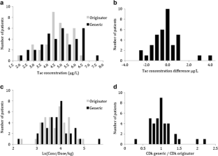 Retrospective cohort study in 37 pediatric renal transplant recipients who switched to Tacrolimus Sandoz®. Each patient had three pre-conversion tacrolimus trough and creatinine concentrations within the 4 months prior and three post-conversion concentrations on day 3, 10, and the next subsequent level. Mean pre- and post-conversion tacrolimus trough concentrations and glomerular filtration rate (eGFR) were calculated. Tacrolimus concentration, CoV, and creatinine differences were compared by paired t test.