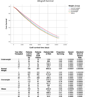 Naik AS, Sakhuja A, Cibrik DM, Ojo AO, Samaniego-Picota MD, Lentine KL (2016) The impact of obesity on allograft failure after kidney transplantation: a competing risks analysis. Transplantation 100:1963–1969