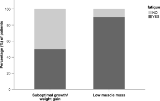 Forty-six patients (median age 14.5 years) were prospectively enrolled. Frailty phenotype was defined as the presence ≥ 3 of the following indicators: suboptimal growth/weight gain (body mass index height age < 5th percentile or height < 3rd percentile or loss of ≥ 10 percentiles/year in at least one parameter), low muscle mass (lean tissue mass height age < 5th percentile or loss of ≥ 10 percentiles/year), general fatigue reported by parent or child, and C-reactive protein > 3 mg/l. Lumbar bone mineral apparent density (LBMAD) was measured by dual-energy X-ray absorptiometry, body composition by bioimpedance spectroscopy, and IGF-1 by enzyme-labeled chemiluminescent immunometric assay.