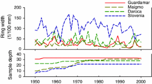 Osborn TJ, Briffa KR, Jones PD (1997) Adjusting variance for sample-size in tree-ring chronologies and other regional mean time series. Dendrochronologia 15:89–99