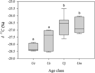 Tanaka-Oda A, Kenzo T, Koretsune S, Sasaki H, Fukuda K (2010b) Ontogenetic changes in water-use efficiency (Δ13C) and leaf traits differ among tree species growing in a semiarid region of the Loess Plateau, China. Forest Ecol Manag 259:953–957
