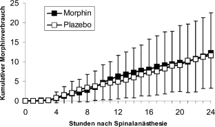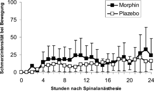 A prospective, randomized, placebo-controlled, double-blind clinical trial was performed. Forty ASA I/II patients undergoing knee arthroscopy under spinal anesthesia were randomized to receive either mepivacaine 4% with 0.1 mg of morphine or mepivacaine 4% with saline (placebo) intrathecally. Postoperative analgesia consisted of intravenous morphine delivered by patient-controlled analgesia (bolus: 2 mg, lockout time: 5 min). During the study period of 24 h, pain intensity at rest and on movement (visual analogue scale, 0: no pain, 100: maximum pain), vigilance, and vital parameters were recorded every hour.
