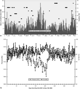 The success of this project is largely owed to the very kind assistance of the following persons: Miss Marisa Nimrod and Miss Gina Joseph, members of Dr. Monteil’s research group; Dr. Celia Poon King and the staff of the Department of Community Health, Faculty of Medical Sciences, University of the West Indies; Dr. Rasheed Rahaman, Medical Chief of Staff, Mt. Hope Hospital; Dr. Beni Balkaran, Director, Department of Paediatrics, Mt. Hope Hospital; Mr. Glendell de Souza and the staff of the Meteorological Office of Trinidad & Tobago; Isaac Dialsingh, Assistant Lecturer and the staff of the Department of Mathematics & Computer Science, Faculty of Medical Sciences, University of the West Indies.