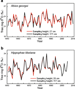 Song X, Kenneth C, Helliker B (2014) Interpreting species-specific variation in tree-ring oxygen isotope ratios among three temperate forest trees. Plant Cell Environ 37(9):2169–2182