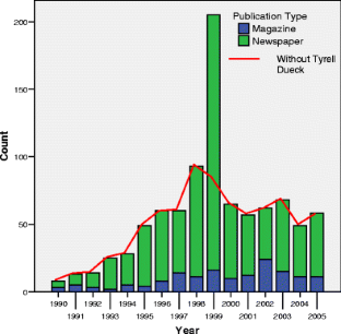Cancer patients repeatedly identify the mass media as a primary information source to support their decisions to use complementary and alternative medicine (CAM). Accordingly, the objectives of this research are to describe: (1) what has been reported in the Canadian print media regarding CAM treatment for cancer between January 1, 1990 and December 31, 2005; (2) how that information was represented; and (3) trends in reporting frequency and reporting characteristics.