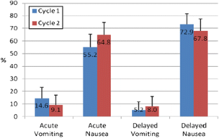 Roila F, Herrstedt J, Aapro M, Gralla RJ, Einhorn LH, Ballatori E, Bria E, Clark-Snow RA, Espersen BT, Feyer P, Grunberg SM, Hesketh PJ, Jordan K, Kris MG, Maranzano E, Molassiotis A, Morrow G, Olver I, Rapoport BL, Rittenberg C, Saito M, Tonato M, Warr D, ESMO/MASCC Guidelines Working Group (2010) Guideline update for MASCC and ESMO in the prevention of chemotherapy- and radiotherapy-induced nausea and vomiting: results of the Perugia consensus conference. Ann Oncol 21(Suppl 5):v232–43