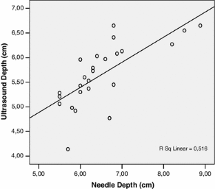 A lower number of puncture attempts and fewer puncture levels were detected in ultrasound (US) groups (p < 0.001). First attempt success rate under US guidance was 92 % in comparison to 44 % using a conventional technique in obese parturients (p < 0.001). In 52 % of the lean patients and in 54.2 % of the obese patients, the intercristal line was at the L3–L4 and at the L2–L3 interspace, respectively. The duration of spinal procedure was shorter in US groups (22 vs. 52 s, p = 0.031). We found a high correlation between ultrasound and needle depth (r = 0.709, p < 0.001).