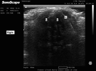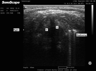 This randomized controlled study was carried out on 266 adult patients who have a rigid neck collar in place for cervical spine immobilization and were randomly allocated into two equal groups. All patients were subjected to the same anesthetic protocol. After full neuromuscular blockade, neck collar was removed and tracheal intubation was done in the neutral position. In group A, the trachea was intubated guided by a 5–12-MHz linear ultrasound probe attached to a Sonoscape A5 ultrasound machine. In group B, the trachea was intubated by an endotracheal tube mounted over a fiberscope (Karl Storz, working length 65 cm, distal tip diameter 5.6 mm). Hemodynamic measurements and oxygen saturation were recorded. Tracheal intubation criteria for both groups including duration of the intubation procedure, number of intubation attempts, success rate at each attempt, and the lowest oxygen saturation recorded during tracheal intubation were recorded.