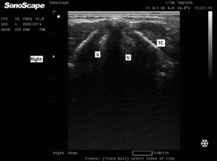 Ultrasound has growing applications in airway management during anesthesia. The aim of the present study was to evaluate the feasibility of real-time ultrasound-guided tracheal intubation in patients with cervical spine immobilization relative to fiberscope-guided tracheal intubation.