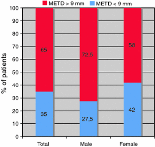 The mean value of the minimum external anteroposterior diameter was 10.83 ± 1.08 and 7.53 ± 1.10 mm for the minimum internal anteroposterior diameter. The mean value of the minimum external transverse diameter was 9.19 ± 0.91 and 6.07 ± 1.08 mm for the minimum internal transverse diameter. The mean AP diameter was significantly larger than the mean transverse diameter; 57 (65%) individuals had the minimum external transverse diameter >9.0 mm that would allow the insertion of two 3.5-mm cortical screws with tapping, and five (6%) individuals had the minimum internal transverse diameter >8.0 mm that would allow the insertion of two 3.5-mm cortical screws without tapping.