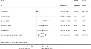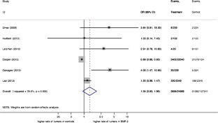 We conducted an online search for relevant controlled trials and extracted data on the abovementioned endpoints. Studies were eligible for inclusion if they reported on spinal fusion with rhBMP-2 in humans. Publication bias and heterogeneity were assessed mathematically. These data were synthesized in a meta-analysis using DerSimonian–Laird random effects modeling to calculate pooled odds ratios.