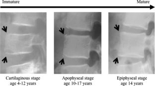 Thirty lumbar spondylolysis patients (23 boys, 7 girls, including a pair of twins; mean age 9.5 years, age range 5–12 years) were studied. Patient data on history of athletic activity, symptoms at first consultation, and radiological findings such as spinal level, stage of the stress fracture, and skeletal age were collected.