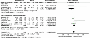 Four randomized controlled trials and 13 observational studies were eligible. The pooled data revealed that fusion was associated with significantly higher rates of satisfaction and lower leg pain scores when compared with decompression alone. However, fusion significantly increased the intraoperative blood loss, operative time and hospital stay. Both techniques had similar ODI, back pain scores, complication rate, and reoperation rate.