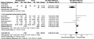 To compare the clinical effectiveness of decompression plus fusion and decompression alone for patients with degenerative lumbar spondylolisthesis, a systematic review and meta-analysis of all available evidence was performed.
