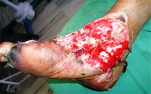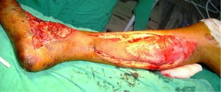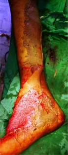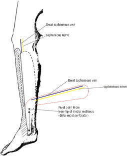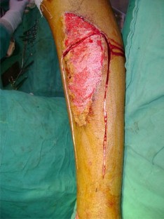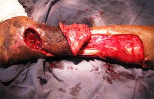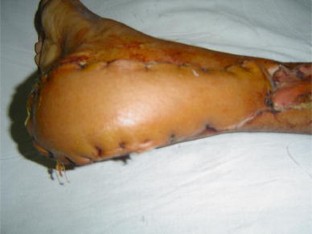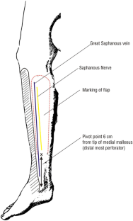 The study is conducted from March 2003 through Dec 2009 and included a total of 96 patients with defects in lower two-thirds of leg and foot. There are 74 males and 22 females. Distal pivot point was kept approximately 5–6 cm from tip of medial malleolus, thus preserving the distal most perforator, and the flap is turned and inserted into the defect. Donor site is covered with a split thickness skin graft. Postoperative follow-up period was 6 weeks to 6 months.
