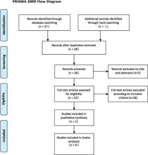 We searched electronic databases (including MEDLINE, Google Scholar, and SCOPUS) and performed hand searching of English orthopedics journals and conference abstracts until May 2017. We pooled data from five studies, with a total of 278 patients.