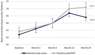 Sivaprasad S, Prevost AT, Vasconcelos JC et al (2017) Clinical efficacy of intravitreal aflibercept versus panretinal photocoagulation for best corrected visual acuity in patients with proliferative diabetic retinopathy at 52 weeks (CLARITY): a multicentre, single-blinded, randomised, controlled, phase 2b, non-inferiority trial. Lancet 389:2193–2203