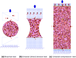 From Fig. 3c, the compressive stress history of the uniaxial compression model can be obtained from the average of the compressive stresses monitored at the five points (t1, …, t5) of the top loading platen: