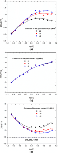 Laboratory tests showed that the average direct tension strength (DTS0) of the Lac du Bonnet granite was 6.9 MPa, and significantly less than its average Brazilian tension strength (BTS0), i.e., 8.8 MPa. In this paper, a grain-based model (GBM) with a 2D universal discrete element code (UDEC) was used to explore factors that could control the difference in the direct tension strength (DTS) and Brazilian tension strength (BTS) of the Lac du Bonnet granite from the micromechanical point of view. Micro parameters of the grain contacts were investigated, i.e., the tensile strength (T), cohesion (c), friction angle (φ), and the ratio of the shear to normal stiffness (λ). Results show that both BTS and DTS highly depended on log(λ). With an increase in log(λ), the BTS first increased nonlinearly and decreased instead after achieving a peak while the DTS always increased nonlinearly. The BTS was sensitive to T and c, while the DTS was mainly sensitive to T. The ratio of DTS to BTS first decreased with the increase of log(λ) and then increased instead from a minimum. It was found that the GBM with UDEC can well reproduce the uniaxial compression, direct tension and Brazilian tests of the Lac du Bonnet granite simultaneously only on condition that λ = 2.51. This indicated that the shear stiffness of the grain boundary in the Lac du Bonnet granite may be several times larger than its normal stiffness. This may be the main factor controlling the difference in the BTS and DTS of the Lac du Bonnet granite.