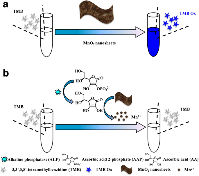 Na W, Li N, Xingguang S (2018) Enzymatic growth of single-layer MnO2 nanosheets in situ: application to detect alkaline phosphatase and ascorbic acid in the presence of sulfanilic acid functionalized graphene quantum dots. Sensor Actuat B-Chem 274:172–179