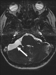 We present a rare and interesting case of a cerebellopontine angle cyst containing ectopic choroid plexus tissue in a 26 year-old female. Surgical resection was performed, and histological examination confirmed the presence of choroid plexus in the cyst wall. This is the first reported case of ectopic choroid plexus at the cerebellopontine angle in an adult. We present the case and review the literature.