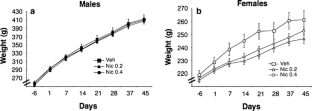 Grunberg NE, Winders SE, Popp KA (1987) Sex differences in nicotine’s effects on consummatory behavior and body weight in rats. Psychopharmacology (Berl) 91:221–225