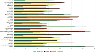 The state of Andhra Pradesh was reorganized into states of Telangana and Andhra Pradesh on 2 June 2014, and 21 new districts were created on 11 October 2016, which lead to 31 districts in Telangana. On 17 February 2019, two more districts were formed taking the total number of districts to 33. This latest change was not accounted for present analysis and we used 31 districts only.