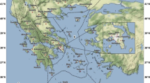 where mi denotes the center data point and Δti is the half-width of the ith smoothing interval of the time series and λi are Lagrangian multipliers. For open time series, the first/last smoothing interval must start/end with the time series, whereas for periodic series no such limitation exists. The smoothed values for MEVSS are yielded by deriving Eqs. 3 and 4 by all \( \tilde{T}(t) \) and λi and solving the resulting set of n + i linear equations. Even if the number of data points is large, the numerical solution is very effective and fast, because the matrix of coefficients is an extremely sparse matrix. It should be noted that MEVSS is not equal to the conventional smoothing spline procedure, also known as variational interpolation (Sasaki 1955), furthermore denoted in this paper by SPLIS. There, a function is searched for by the condition