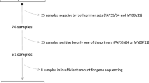 Forslund O, Antonsson A, Nordin P (1999) A broad range of human papillomavirus types detected with a general PCR method suitable for analysis of cutaneous tumours and normal skin. J Gen Virol 80:2437–2443