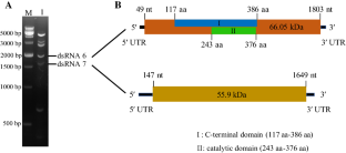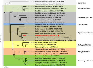 In this study, we report a novel double-stranded RNA (dsRNA) virus, Beauveria bassiana partitivirus 3 (BbPV-3), derived from the entomogenous fungus Beauveria bassiana isolate RCEF5853 from China. The genome of BbPV-3, whose sequence was determined by metagenomic sequencing, RT-PCR, and RACE cloning, comprises two dsRNA genome segments that are 1,856 and 1,719 bp long. The first segment contains a single ORF (ORF-1) encoding a 584-amino-acid-long protein (66.05 kDa) with a conserved RNA-dependent RNA polymerase (RdRp) motif. The second segment also has a single ORF (ORF-2) encoding a 500-amino-acid-long coat protein (CP) (55.9 kDa). The CP and RdRp sequences showed highest identity of 43.4% and 60.2%, respectively, to those of Colletotrichum eremochloae partitivirus 1. Phylogenetic analysis of the RdRp domain of the polyprotein revealed that BbPV-3 grouped together with the members of the genus Epsilonpartitivirus. Hence, we proposed that Beauveria bassiana partitivirus 3 is a novel member of the proposed genus Epsilonpartitivirus.