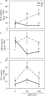 Matayoshi, C.L., Pena, L.B., Arbona, V. et al. Early responses of maize seedlings to Cu stress include sharp decreases in gibberellins and jasmonates in the root apex. Protoplasma 257, 1243–1256 (2020). https://doi.org/10.1007/s00709-020-01504-1