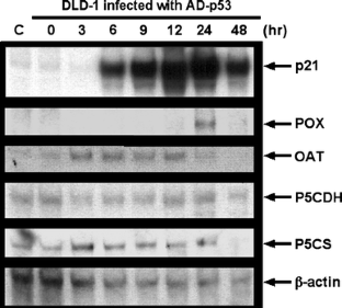 We thank Dr. K. Polyak, Harvard Medical School, for the RNA membrane that was blotted with total RNA isolated from DLD-1 cells infected with AD-p53. We also thank Mr. G. Steel and Ms. C. Obie, Johns Hopkins University School of Medicine, for their help and support. This work is supported by NM-INBRE grant (2 P20 RR016480-04), DOD PCRP (#W81XWH-05-1-0357), and NCI-RO1 (5RO1 CA106644) (to CAA. Hu), and by Howard Hughes medical Institute (to D. Valle).