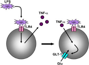 Persson M, Brantefjord M, Hansson E, Ronnback L (2005) Lipopolysaccharide increases microglial GLT-1 expression and glutamate uptake capacity in vitro by a mechanism dependent on TNF-alpha. Glia 51:111–120