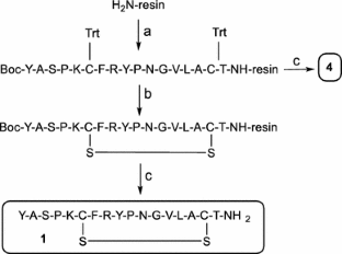 Kamber B, Hartmenn A, Eisler K, Riniker B, Rink H, Siber P, Rittel W (1980) The synthesis of cystein peptides by iodine oxidation of S-trytil-cysteine and S-acetamidomethyl-cysteine peptides. Helv Chim Acta 63:899–915