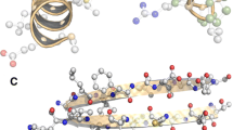 PPII structure is characterized by the absence of intramolecular hydrogen bonds, which makes it difficult to distinguish PPII from irregular structures using 1H-NMR spectroscopy.(Bochicchio and Tamburro 2002) There are various factors which have influence on the formation of PPII and these include the nature of the monomer, the chain length, the solvent, ionic strength, the temperature, the presence of denaturants, etc. (Brown and Zondlo 2012; Zondlo 2022; Rajewski et al. 2023) Kakinoki et al. (2005) have used circular dichroism and molecular mechanics to study the propensity of proline oligomers to form either PPII or PPI helices with respect to the chain length and the solvent. In their experimental study which was carried out on proline homopolymers of 13 (P13), 6 (P6) and 4 (P4) residues respectively, they found out that the formation of PPII or PPI helices depended on the chain length and on the solvent. At 5 °C, while PPII was favoured by water and trifluoroethanol (TFE), PPI was favoured by methanol and 1-propanol. This is not in perfect accordance with the findings of a recent study by (El-Baba et al. 2019) who on their side found that PPII was stabilized by polar solvents (water and methanol) at all temperatures. Referring back to the study of Kakinoki et al. (2005), each of the PPII and PPI conformations in their study was stabilized by an increasing number of residues as long as the solvent was favourable to that conformation. The dependence on chain length was for example evidenced by the fact that a time-dependent conformational transition from PPII to PPI could be observed when P13 was dissolved in methanol and 1-propanol, whereas P4 and P6 stayed in PPII conformation in methanol and only P4 stayed in PPII conformation in 1-propanol. Their theoretical studies which took into consideration the energy difference between PPI and PPII helices per residues showed that inter-residue interactions are more favourable in PPI than in PPII. Their findings are also supported by another theoretical study by Moradi et al. (2009) who studied in silico a hexamer, a nanomer and a tridecamer polyproline in gas phase and in implicit water. They have also studied the nanomer with explicit hexane and 1-propanol. Their results corresponding to gas phase, implicit water and explicit 1-propanol media all supported the experimental results of Kakinoki et al. (2005). In an effort to explain the difference in behaviour of polyproline in different solvents, Moradi et al. (2009) suggested two features which are involved in this behaviour. First, they suggested that the characteristic ring of polyproline prevents the nitrogen atom of the prolyl bond from hydrogen bonding, and that this affects both the structure of the helices and the interaction with the solvents. Although this argument may hold for polyproline, it is likely not appropriate to explain the formation of PPII by other amino acids such as polyglycine, polylysine, etc. which do not have conformational restrictions. Then, they argue that the cis–trans conformations give different orientations of the carboxyl groups, and that while these groups are shielded from the solvent by proline rings due to the almost parallel orientation of these carboxyl groups with respect to the axis of the helix in PPI, they are more exposed to the solvent in PPII due to their mainly perpendicular orientation with respect to the axis of the PPII helix. They also add that the compact structure of PPI and the extended structure of PPII respectively contribute to the shielding or the exposition of the carbonyl groups to the solvent, thus leading to different behaviour of polyproline in different solvents. It is noteworthy that Liu et al. (2004b) had previously noticed that in water and short-chain aliphatic alcohols (methanol, ethanol and 2-propanol), the PPII content of AcGGAGGNH2, the model of a neutral fragment with minimal constraints, decreased with the decrease in the solvent’s empirical overall polarity rather than with the dielectric constant or any other single solvent property.