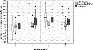 Kohorst P, Brinkmann H, Li J, Borchers L, Stiesch M (2009) Marginal accuracy of four-unit zirconia fixed dental prostheses fabricated using different computer-aided design/computer-aided manufacturing systems. Eur J Oral Sci 117:319–325